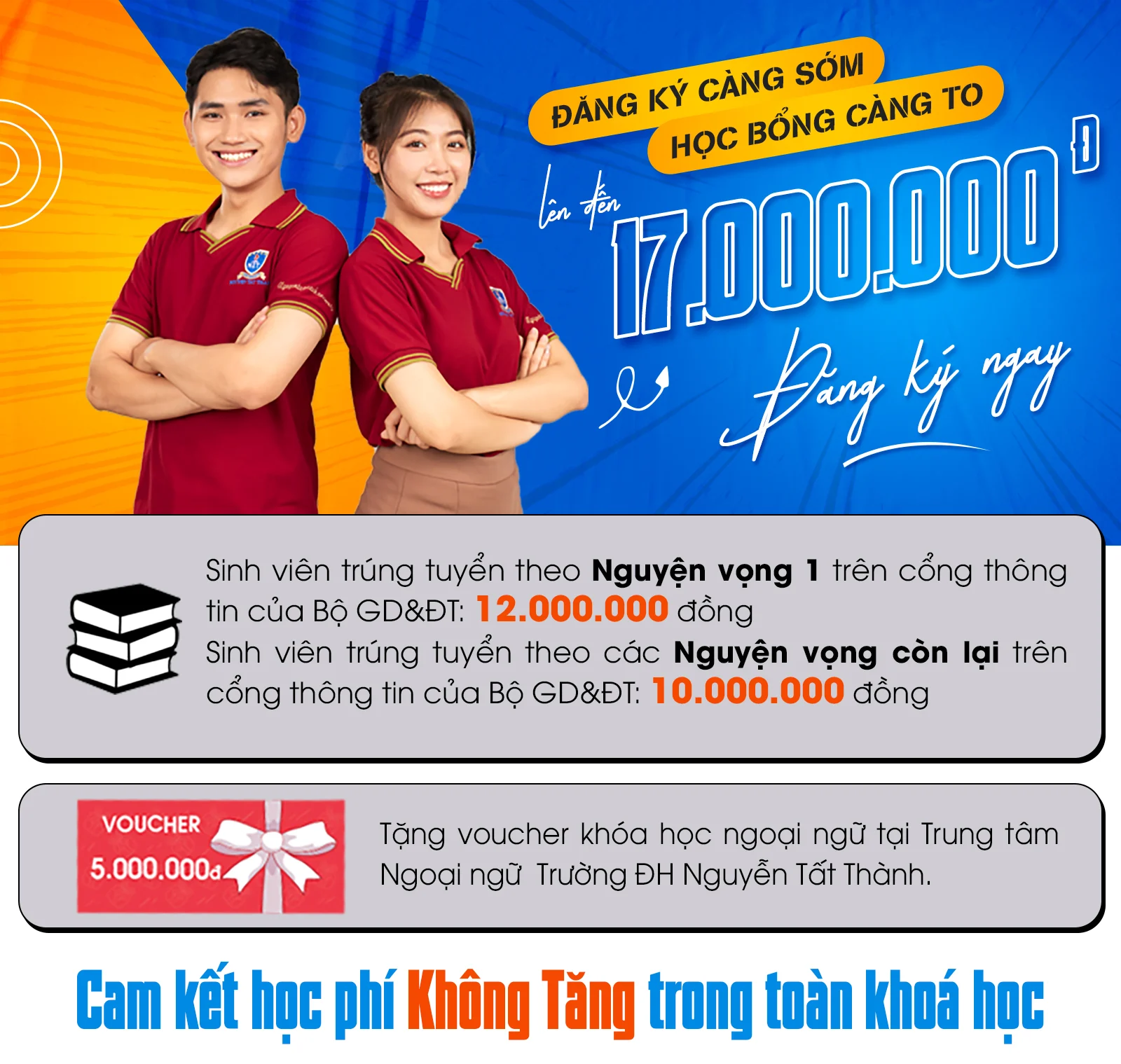 XEM THÊM: HỌC BỔNG 17.000.000Đ – "ĐĂNG KÝ CÀNG SỚM, HỌC BỔNG CÀNG TO" TẠI TRƯỜNG ĐẠI HỌC NGUYỄN TẤT THÀNH
